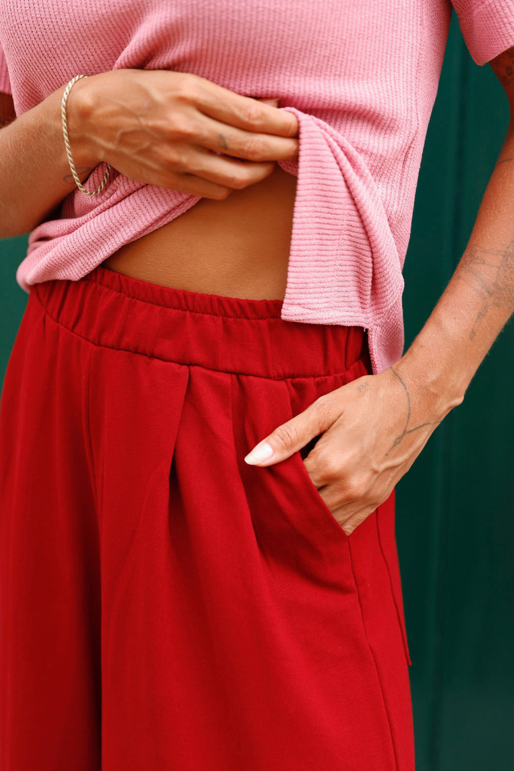 A calça perfeita para quem ama unir conforto e estilo. Feita em malha de moletom macia e encorpada, nossa pantalona vinho tem modelagem ampla e cós elástico que garante ajuste confortável na cintura. Ideal para produções modernas e descomplicadas, ela transita com facilidade do look casual ao urbano chic.