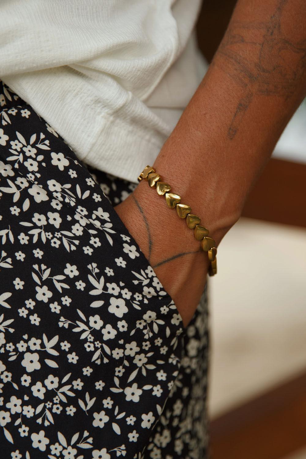 AcessóriosPulseirasPULSEIRA CORAÇÕES HEMATITA DOURADA