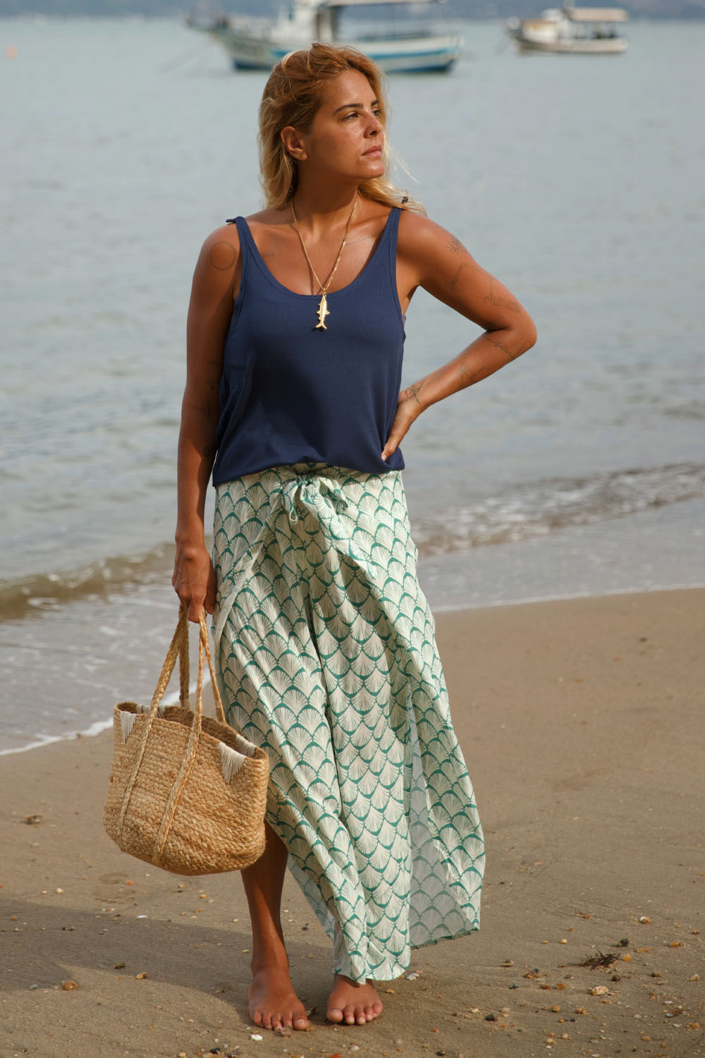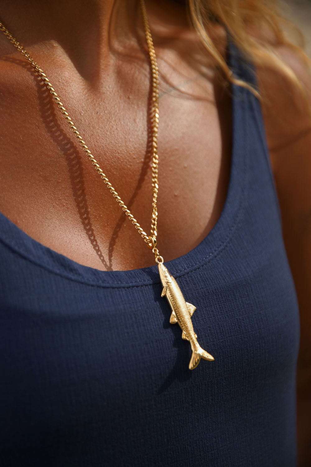 Regata básica, em malha leve azul marinho, detalhe na barra com nosso coração bordado em vermelho.